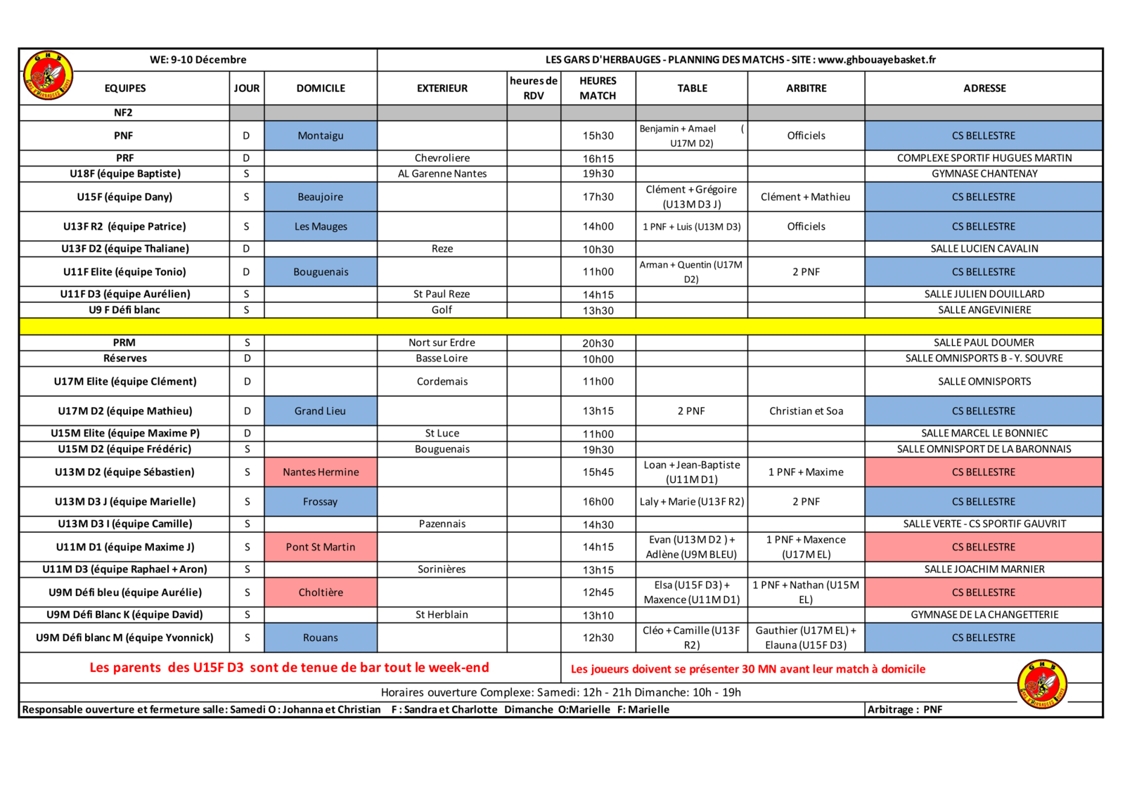 Planning 17-18 Février !